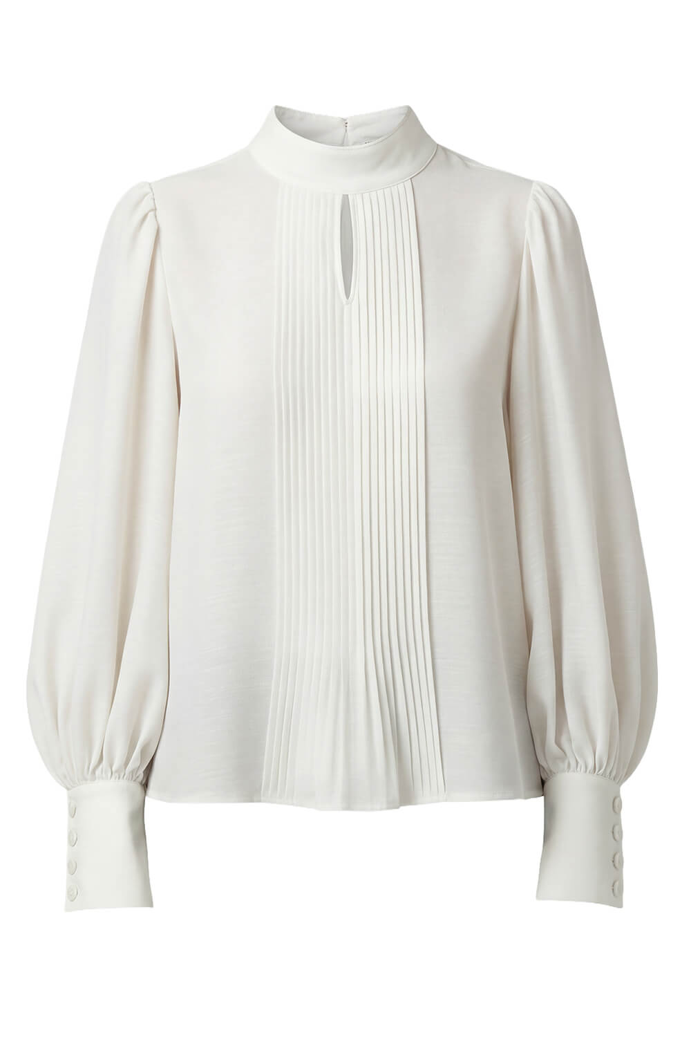 - Front : Stand collar with front keyhole and centre front knife pleated bib panel